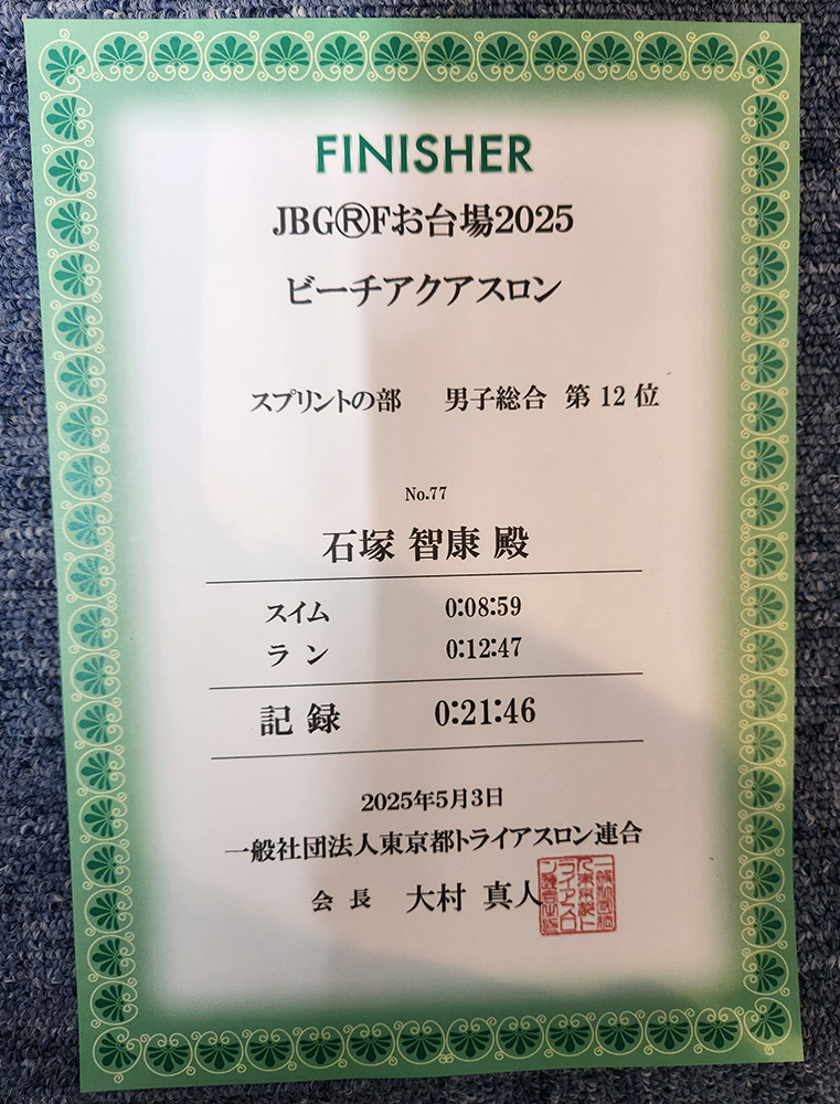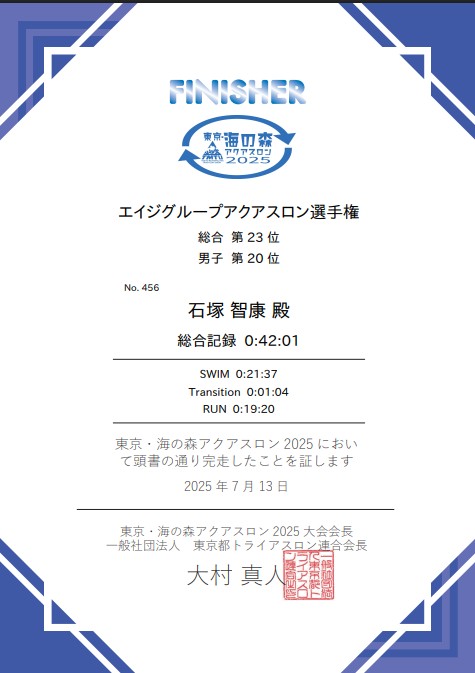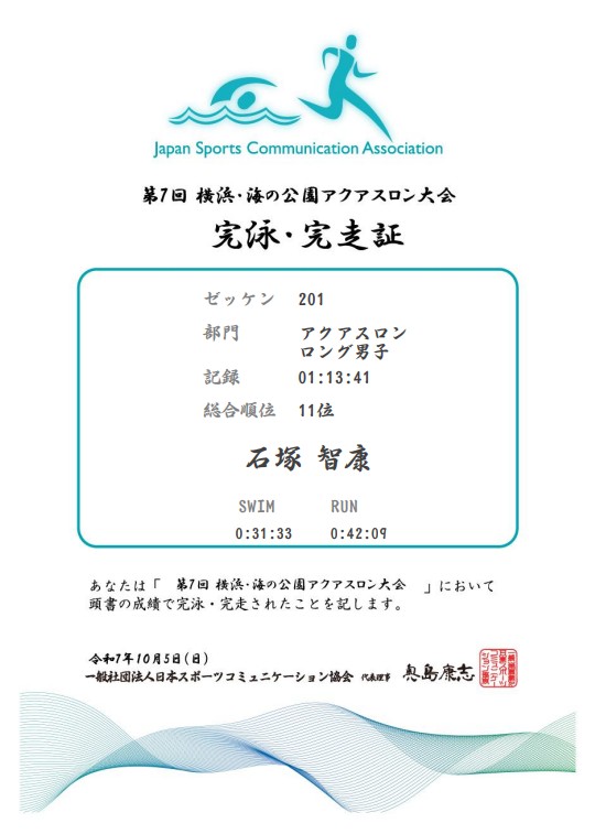 - 2025年07月13日 第1回日本エイジグループアクアスロン選手権に参加してきました。有名な方々を間近に見ることができ、良い経験になりました。