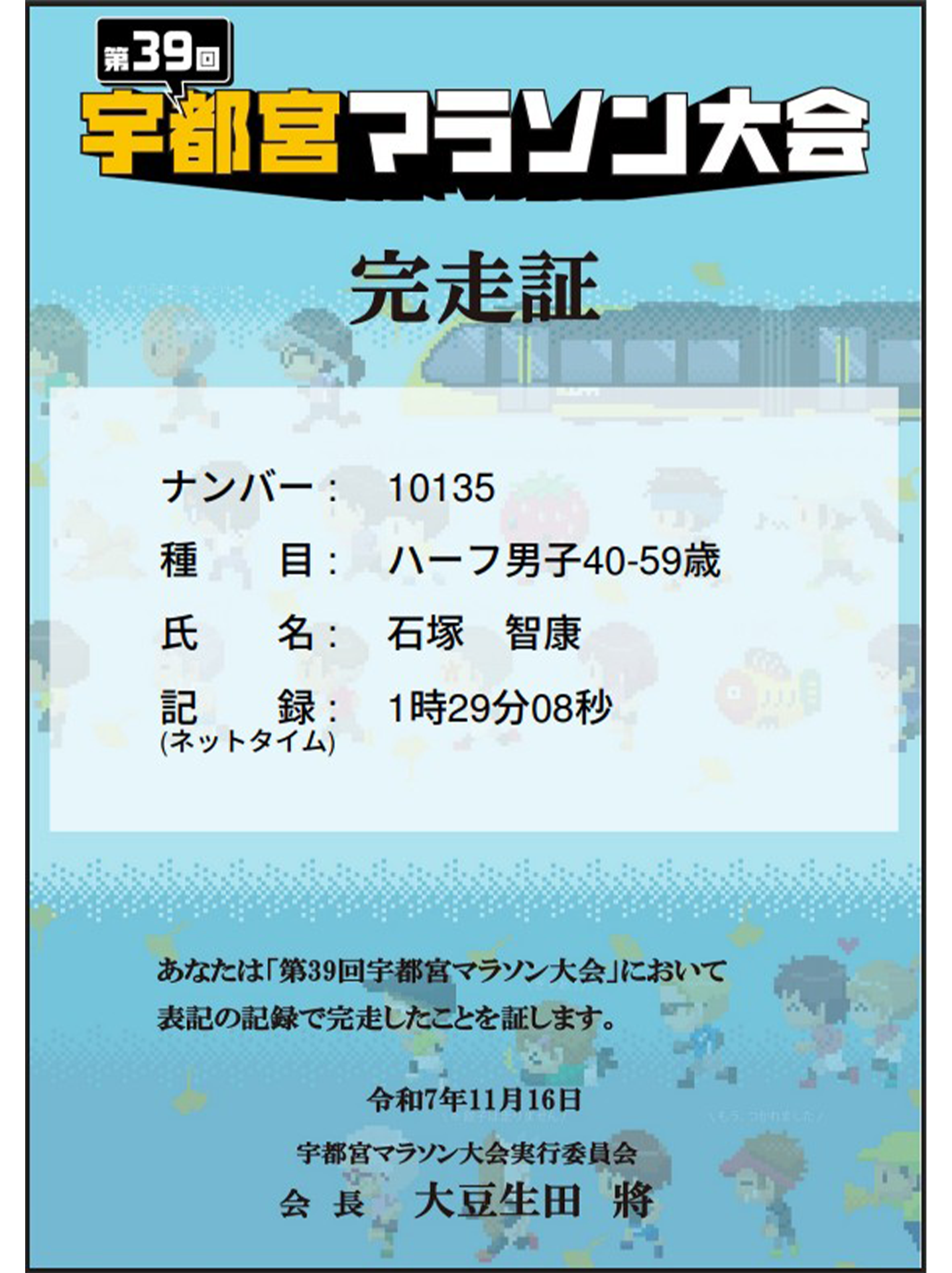 - 2025年11月16日 第39回宇都宮マラソン大会(ハーフ)に参加してきました。レース後の餃子はおいしかったです。